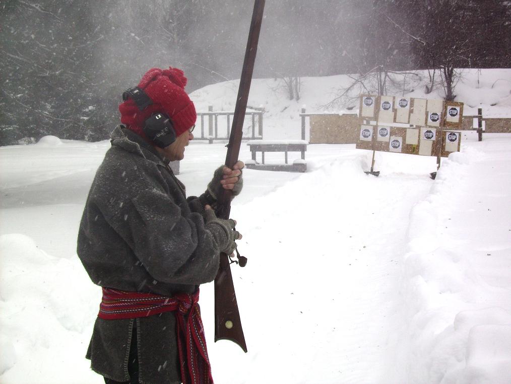 John P. preparing to shoot in the snow (February)